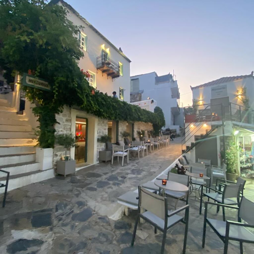 Mercurius Cocktail Bar opens every year during Easter time and closes end of September and is located at one of the most central spots of Skopelos town.